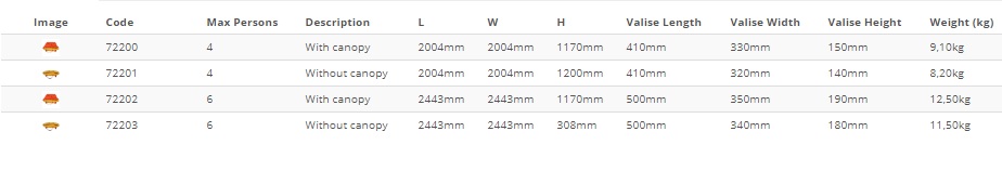 - LALIZAS Tratwa reakreacyjna Leisure-Raft w walizie z daszkiem (tratwy ratunkowe) - wersja 4-osobowa (nr 72200), wersja 6-osobowa (nr 72202)